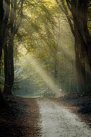 Koop de foto Invallende lichtstraal in donker bos van Fotografiecor .nl op canvas, aluminium dibond, (ingelijste) fotoprint, behang en ArtFrame, op maat geprint in Fine-Art kwaliteit.