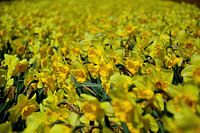Meestal bloeien de narcissen eerder dan de tulpen, maar als ze goed getimed zijn, zijn ze allebei te zien. We hadden het geluk om deze invasie van narcissen te vinden op de Gooweg bij Noordwijkerhout in Nederland.