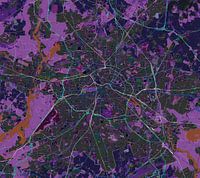 Gedetailleerde plattegrond van de hoofdstad van Duitsland in negatieve kleuren