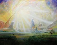 De voorstelling van daarnet toont een enorme brug die een hele vallei overbrugt, evenals lichtstralen die vanuit verschillende bronnen op het tafereel schijnen. Dit schilderij fungeert als een brug tussen werkelijkheid en magie, tussen de zichtbare wereld en het onverklaarbare.