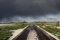 De Kooiweg net buiten Edam. Het begon te dooien na een serieuze sneeuwbui. Indrukwekkende wolken boven de polder maakten voor mij een geweldig beeld.