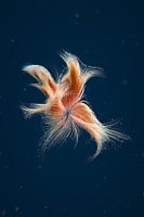 Een digitaal beeld van tentakels met kleine glazen bolletjes en stof, scherptediepte en chromatische aberraties.