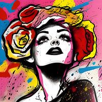 Het is mixed media werk met wat invloeden van de kunststroming popart, maar ook in…