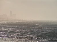 De zon brandt me mist weg. Het silhouet van Zandvoort komt uit het grijs tevoorschijn.