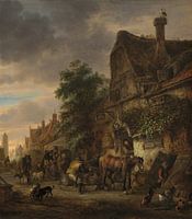 Koop dit schilderij Isaac van Ostade, Werklieden voor een herberg, 1645 van Atelier Liesjes als reproductie op canvas, aluminium dibond, (ingelijste) fotoprint, behang en ArtFrame, op maat geprint in Fine-Art kwaliteit.
