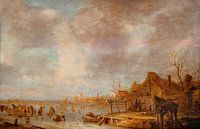 "Winterdag buiten Haarlem" van Isaac van Ostade, geschilderd rond 1640, toont een levendig winterlandschap net buiten de stad Haarlem. Op de voorgrond is een bevroren rivier of kanaal te zien met talrijke mensen die verschillende activiteiten uitvoeren op het ijs. Enkele individuen zijn aan het schaatsen, terwijl anderen lopen of in groepjes staan te praten. Er zijn ook mensen met sleeën en paarden, wat duidt op vervoer en handel.