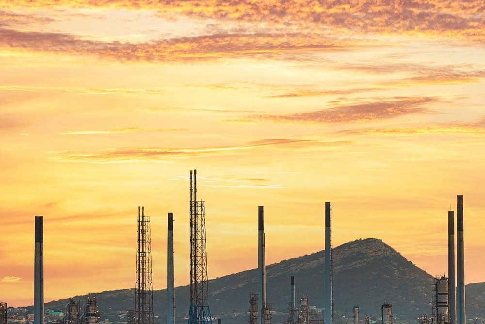 De voormalige Isla raffinaderij op Curacao in het avondzonnetje.