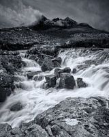 Isle of Skye, Schotland. Rivier Sligachan, Zwart Wit