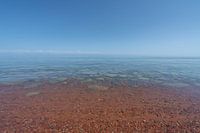 Het Issyk Kul in Kirgizië meer met doorzichtig water stenen in het water. Eindeloos zicht met wat kleine wolken in de verte.