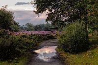Na fikse regenbuien kleurde de heide prachtig op tijdens de zonsondergang en spiegelde de lucht in de plassen... Locatie: Mandefjild Bakkeveense heide.