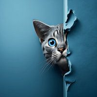 Portret van een ondeugende kat in blauw tinten.