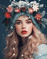It's Christmas time. Modern portret van een jonge vrouw in kerstsfeer. Kies zelf het formaat en materiaal voor deze bijzondere blikvanger.