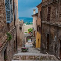 Prachtig doorkijkje. vanuit een eeuwenoud Italiaans stadje is er uitzicht over de heuvels van Marken.