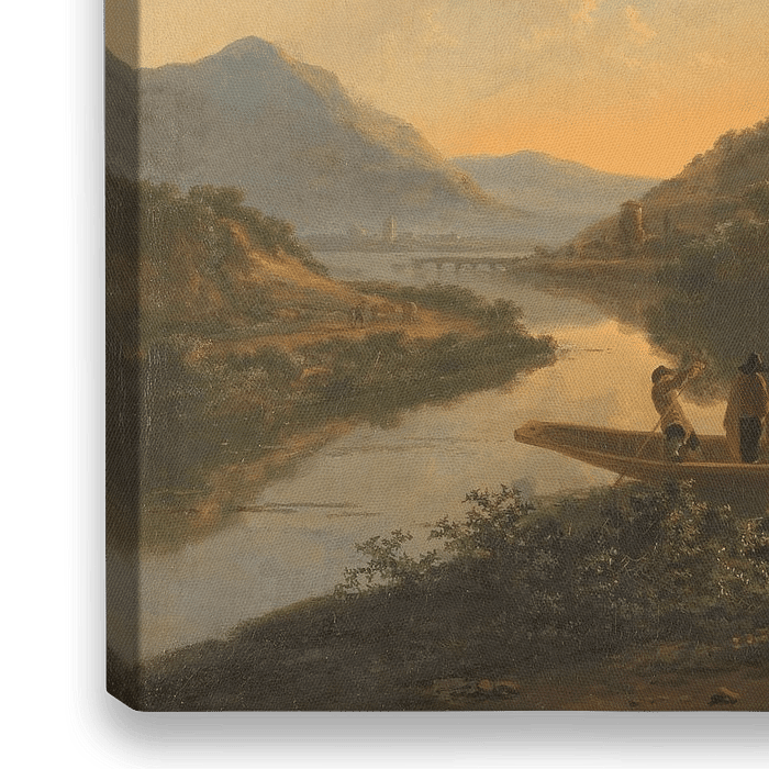 Koop Italiaans landschap met overzetveer, Jan Both, ca. 1652 als reproductie geprint op canvas, aluminium dibond, (ingelijste) fotoprint, behang en ArtFrame. Voor jou op maat geprint in Fine-Art kwaliteit.