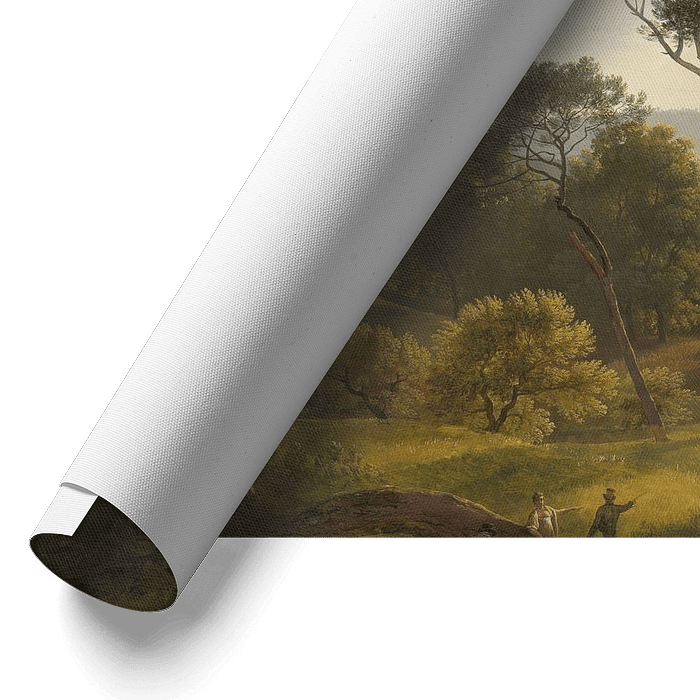 Voogd werd de ?Hollandse Claude? genoemd, naar de Franse schilder Claude Lorrain, die beroemd was om zijn historische landschappen, badend in gouden licht. Voogd schilderde de tuinen van de Villa Borghese in Rome laat in de middag: de zon werpt lange schaduwen en de bomen steken scherp af tegen de lucht. Wandelaars genieten van de prachtige zonsondergang. Op de voorgrond zit een kunstenaar tegen een boom te tekenen.