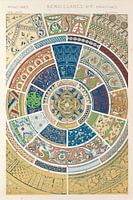 Kleurrijke patronen en ornamenten uit de Italiaanse Renaissance in cirkelvorm.