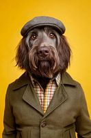 Deze charmante Italiaanse Spinone straalt een bijzondere elegantie uit in een stijlvolle outfit met een gestippelde pet en groene vacht. Zijn zachte, warrige vacht en trouwe, heldere ogen geven hem een unieke uitdrukking die zowel speels als gedistingeerd is - een echt karakter dat elke kamer zal opfleuren.