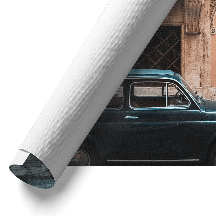 Een oude Italiaanse Fiat in de mooie zandkleurige straatjes van Rome, Italië. Deze stad is perfect voor straatfotografie en om lekker doorheen te lopen.