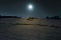 Een oude vervallen schuur midden in het Italiaanse landschap. En dat onder een prachtige sterrenhemel en een grote maan.