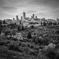 Koop de foto Italië in vierkant zwart wit, San Gimignano van Teun Ruijters op canvas, aluminium dibond, (ingelijste) fotoprint, behang en ArtFrame, op maat geprint in Fine-Art kwaliteit.