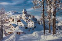 Italiaanse Alpen met het prachtige bergdorpje in de sneeuw.