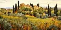 Dit werk, getiteld "Italië," biedt een sfeervolle weergave van een typisch Italiaans landschap. De compositie bevat waarschijnlijk elementen zoals glooiende heuvels, pittoreske dorpen en misschien zelfs iconische architectuur, allemaal weergegeven in warme, uitnodigende kleuren. De zachte lijnen en harmonieuze tinten roepen een gevoel…