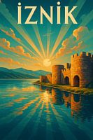 İznik Art Deco Poster - Elegante zonsondergang aan het meer van Travel Shop