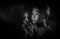 BAGHAN,MYANMAR, DECEMBER 10 2015 - JONGE MONNIK MEDITEREND IN KLOOSTER IN BAGHAN. In Myanmar moeten zowel jongens als meisjes verplicht gedurende een bepaalde tijd het klooster in.