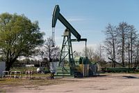 Fünfhausen Hamburg Germany Nodding donkey oil pumping station operated by Neptune Energy in the Reitbrook field.