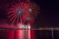 Jaarlijkse vuurwerk shows voor het Plage de la Croisette, Cannes, Alpes Maritime, Frankrijk