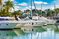 Ankerende jachten in de jachthaven van Cala D'Or op het eiland Mallorca, Spanje Middellandse Zee