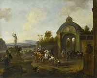 Jachtpartij bij een fontein, Pieter Wouwerman (1660 - 1682)