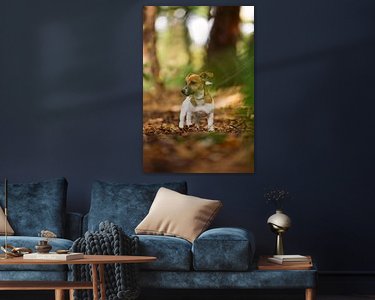 Lilly, een Jack Russell Terriër van 5 maanden oud, tijdens een herfstwandeling in het bos. Statig voor haar uit te staren, zoekend naar vogels en andere hondjes om mee te spelen.