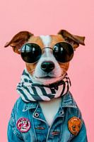 Met een coole zonnebril en een stijlvol spijkerjasje straalt deze Jack Russell Terrier pure persoonlijkheid uit. Zijn brutale look in combinatie met een modieuze sjaal geeft hem de charme van een echte trendsetter. De levendige kleuren van de achtergrond onderstrepen zijn speelse en energieke uitstraling, waardoor elke kijker zal…