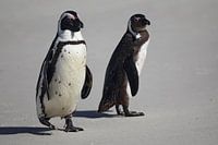 Twee Jackass Pinguïns (Spheniscus demersus) op Boulders Beach, nabij Simons Town op het Kaapse schiereiland, Zuid-Afrika. Er is een van de weinige kolonies Afrikaanse Pinguïns op het vasteland.