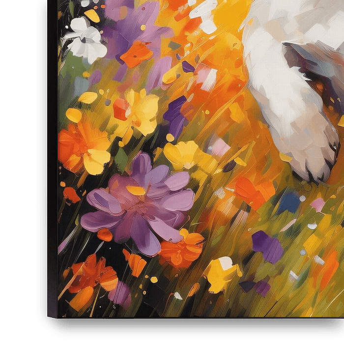 Ervaar de speelse energie van een Jackrussel die op je afkomt met dit levendige canvas kunstwerk. De kleurrijke en golvende bewegingen brengen de vreugde van dit huisdier tot leven. De dikke verf in impasto stijl voegt diepte en textuur toe, ideaal voor een Art Frame of Canvas met baklijst.