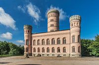 Jagdschloss Granitz wurde von 1838 bis 1846 im Stil der norditalienischen Renaissancekastelle errichtet. Es hat vier Ecktürmen und einem 38 Meter hohen Mittelturm, Insel Rügen, Landkreis Vorpommern-Rügen, Mecklenburg-Vorpommern, Deutschland, Europa