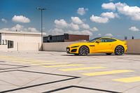 De vernieuwde Jaguar F-Type Coupé R in het geel. Prachtige Britse Sportauto met veel PK en een prachtig motorgeluid.