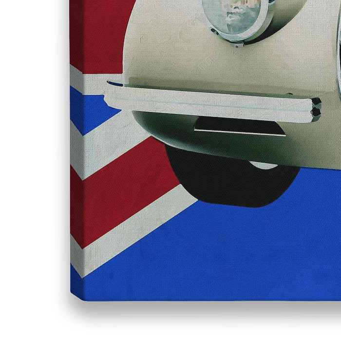 Dit schilderij van de Jaguar XK - 120 uit 1954 voor de Britse vlag is te koop in verschillende maten en kan zowel op doek als op hout en metaal worden afgedrukt. U kunt het schilderij ook laten afwerken met een acrylplaat er overheen waardoor het meer diepte krijgt.
