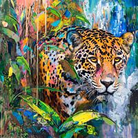 Een Jaguar in de stijl van een modern schilderij.