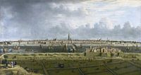 Zicht over de Brabantste stad Antwerpen vanaf Sint-Anna Linkeroever met in de Schelde schepen van Verenigde Provinciën, onder Nederlandse vlag. Het Spaanse Antwerpen met haar stadsmuren, molens en kerken als de Onze-Lieve-Vrouwekathedraal is in detail weergegeven. Voorop zien we Vlamingen met o.a. een verrekijker, een paardenkoets, paarden, koeien en wapens.