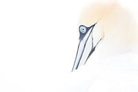 Jan van Gent high key. Jan van gent gefotografeerd in Helgoland. De imposante vogel komt mooi uit tegen een witte achtergrond. Ieder jaar broeden deze vogels op hoge kliffen in Europa. De blauwe rand rondom de ogen, de zwarte aftekeningen bij de snavel en de geel gekleurde kop maken deze zeevogel een geweldig fotomodel voor de fotograaf.