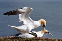 Jan van Genten paring op de kliffen van het Duitse Noordzee-eiland Helgoland - Morus bassanus - Ligging: Duitsland, Insel Helgoland.