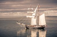 Op de ferry kwamen we langs dit karakteristieke schip dat spiegelde in het rustige water van de Wadden. Wij waren op weg naar Terschelling, op de achtergrond zie je de Brandaris al liggen. Waar Jantje naar toe ging...? Geen idee.
