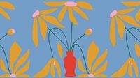 Een abstract schilderij van bloemen en planten van organische vormen met een impressie van Scandinavische kunst uit Noord-Europa Mid Eeuw Moderne stijl.