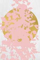 Abstract botanisch landschap met gouden zon en bladeren, twijgen, takken in pastelkleur