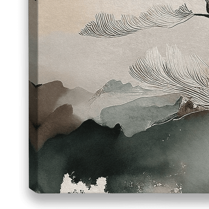 ZEN Japandi Art Japans rustig Landschap met aquarel effect.