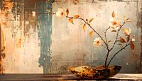 Koop dit stilleven Japandi Art. Minimalistisch Stilleven met bloesemtak (Ikebana) van Studio Pieternel op canvas, aluminium dibond, (ingelijste) fotoprint, behang en ArtFrame, op maat geprint in Fine-Art kwaliteit.