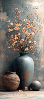 Japandi Bloemen Pracht | Earthbound Whispers - Modern stilleven met bloemen, japandi stijl schilderij