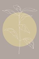 Line art plant of bloem in goud en taupe. Semi abstracte minimalistische kunst met een beetje retro vibes. Perfect voor een woonkamer, slaapkamer, wachtkamer, werkkamer, tuin of hal. Bohemian, Zen, Scandinavisch, Basic, New Rural, Romantic, Japandi woonstijl.